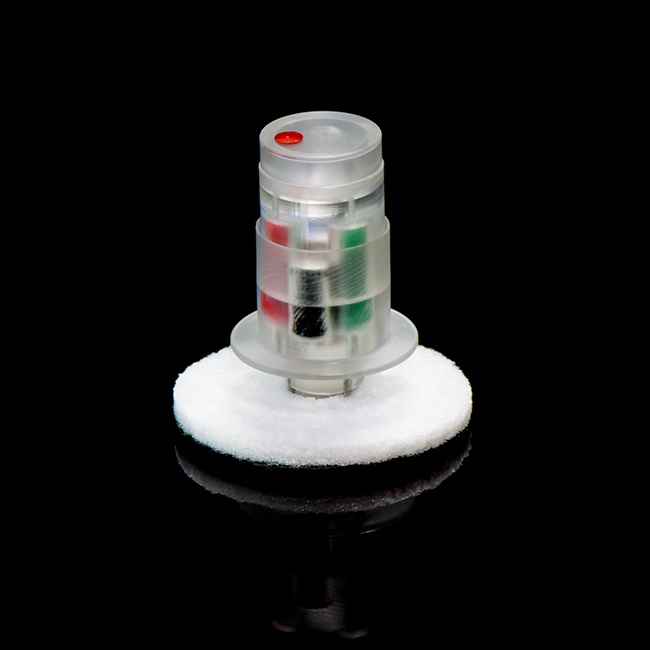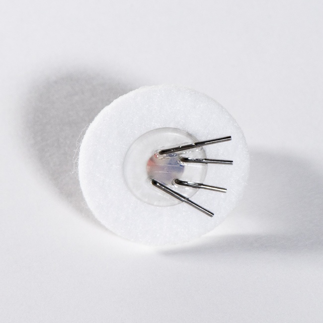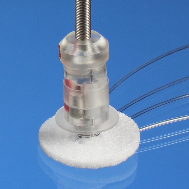 这种可植入纽扣含有四个单独灌流通道,通过与相应的系绳简单连接使用。它与单通道、双通道和三通道的大鼠纽扣式马甲的大小相同,在纽扣的毛毡底端为22ga的针口,分别与四根3Fr管路相连。
