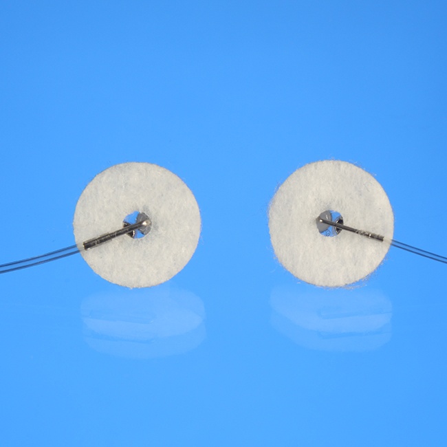 • 具有14mm 的聚酯手术毛毡盘,用于皮下植入。